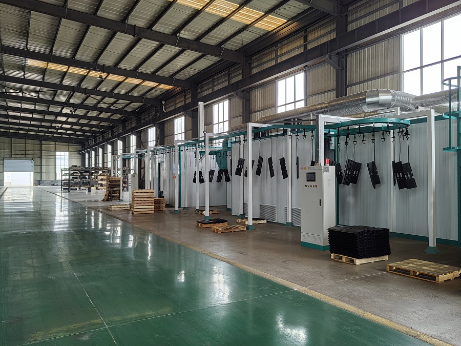 采用靜電噴涂工藝對履帶板進行表面處理后,產品質量可在多維度實現系統性升級,噴涂均勻、表面平整光滑、附著力與機械性能的強化、耐候性與耐腐蝕性的量級提升,延長了使用壽命30%以上,以及美觀效果明顯。這種高質量的涂層不僅提升了產品的外觀美感,還增強了產品的防護性能。靜電噴涂線在提高涂料利用率、提升噴涂質量和效率、環保效益、適應性和綜合效益提升等方面,都呈現出顯著的性能躍升。此次靜電噴涂線的升級,更是成為質量跨越的堅實支撐。